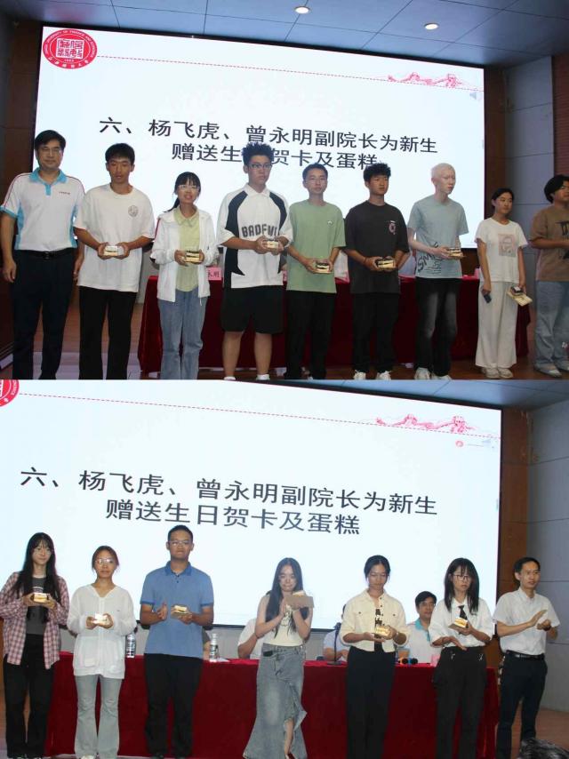 副院长杨飞虎、曾永明为九月生日的新生赠送生日贺卡及蛋糕。