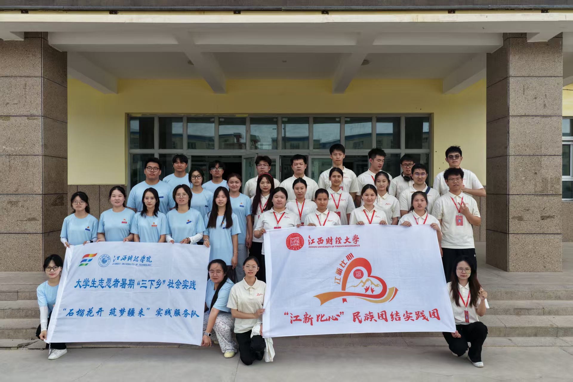 校际联动聚合力,红领巾课堂润边疆 2025年7月12日,江西财经大学“江新比心”民族团结实践团与江西科技学院“石榴花开,筑梦疆来”服务队,在新疆维吾尔自治区克孜勒苏柯尔克孜自治州阿克陶县克孜勒陶镇丝路佳苑小学联合开展“红领巾小课堂”暑期实践活动。两校实践团队结合自身优势,发挥专业特长,通过艺术熏陶、爱国教育、书法传承、科普推广等系列课程,为当地各民族学生提供全方位的文化素养教育,以实际行动促进民族团结。  本次实践活动以校地合作为模式,两校团队分工协作、优势互补。江西财经大学“江新比心”实践团聚焦综合艺术素养提升,组织边疆学生开展剪纸、毛笔书法、扭扭棒手工、脸绘创作、竹笛演奏等特色活动,通过实践操作培养学生的审美能力与动手能力。
