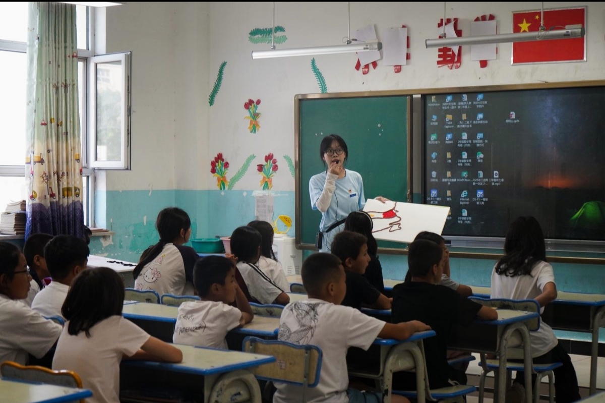 江西科技学院“石榴花开筑梦疆来”实践服务队充分发挥师范专业优势,打造了丰富多元的特色课程体系。除了朗诵指导、体育锻炼、心理健康等基础课程,还创新性加入公益摄影、井冈山精神宣讲、创意手工等兴趣课程,用生动有趣的教学形式点燃学生们的学习热情。活动期间,课后舞蹈、歌曲表演等节目同步开展,为“红领巾小课堂”增添了活力。
