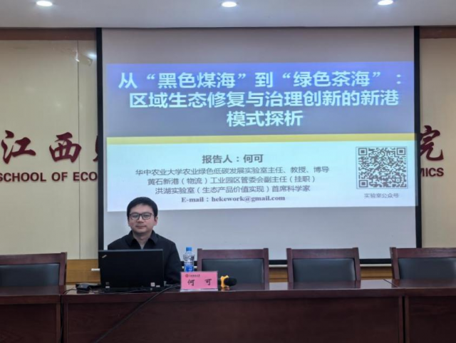 2026年3月8日下午,华中农业大学农业绿色低碳发展实验室主任、国家级青年人才何可教授在蛟桥校区北区综合楼718会议室进行讲学。本次讲座的主题是:《从“黑色煤海”到“绿色茶海”:区域生态修复与治理创新的新港模式探析》,讲座由足彩分析 副院长余炳文教授主持,吸引了来自院内外的50多名师生参与。