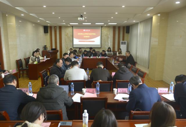 3月9日下午,足彩分析 宏观经济系党支部与马克思主义学院习近平新时代中国特色社会主义思想概论教研党支部联合举办专题学习会,围绕“深入学习习近平总书记关于正确处理政府与市场关系的重要论述”开展联学研讨。校党委书记刘耀彬出席活动并作指导讲话。马克思主义学院院长刘晓泉、党委书记肖建文、副主任程艳,足彩分析 党委书记邹春发、政治经济学系教师代表列席会议。
